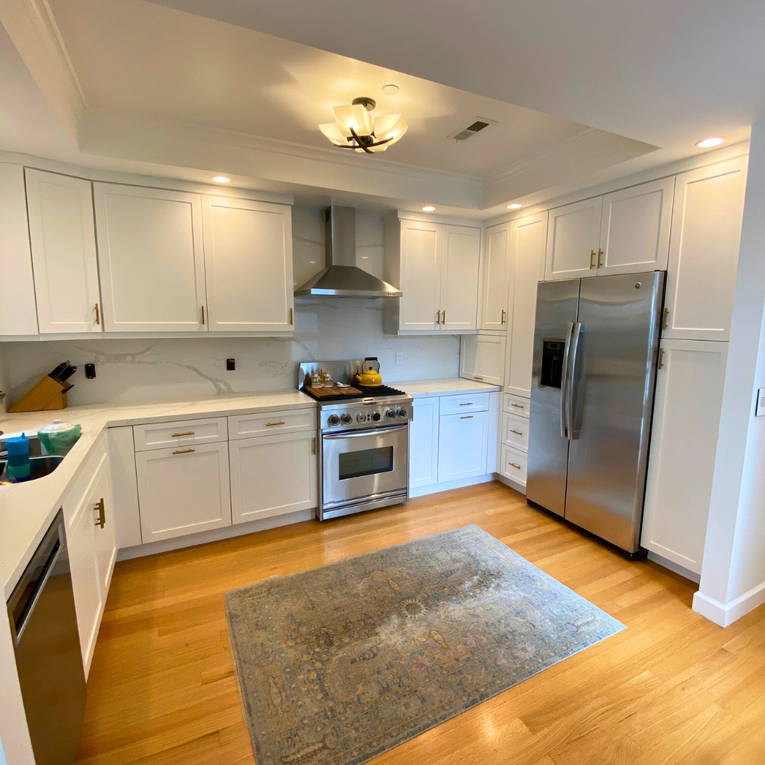 "The Adval team did a fantastic job on our kitchen renovation! We love our new quartz countertop, tile backsplash, painted cabinets/drawers (soft-close) with handles, led recessed lights, and range hood. We were also happy that they were able to save our existing cast iron sink during the demolition. Highly recommend and we plan to work with them again in the future."