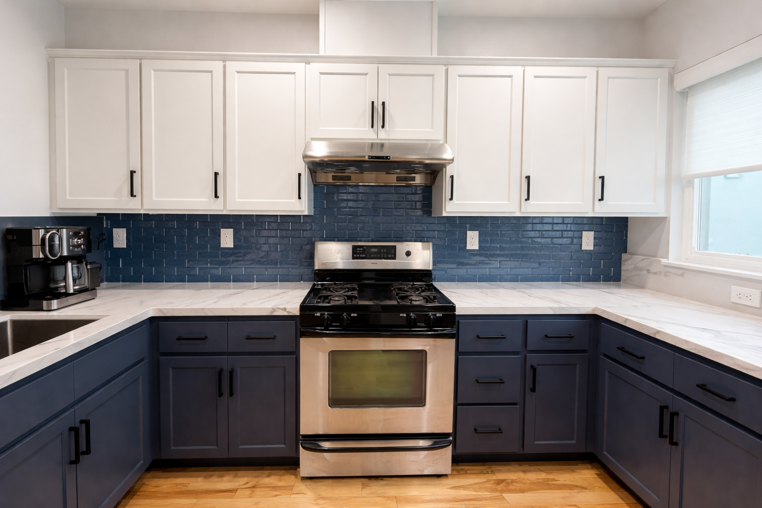 "Adval Construction did an outstanding job on our kitchen! From start to finish, their team were professional, reliable, and incredibly attentive to every detail. The workmanship is excellent, and the quality truly shows in every part of the remodel. We highly recommend Adval Construction to anyone looking for top-notch craftsmanship and great customer service. Thank you for transforming our kitchen into a space we genuinely enjoy every day. We went from a brown kitchen to a clean white/blue kitchen. Range is backordered and will tie everything together! We absolutely LOVE our new kitchen! It turned out even better than we imaged. Now to refinishing our hardwood floors!"